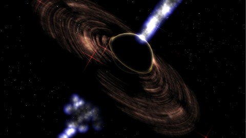 The new multi-messenger observation involved a blazar, the name given to a giant black hole in the center of a galaxy and its surrounding region, rich with tremendous amounts of radiation, particles, and very strong magnetic fields. Think of a rotating disk of stuff (the matter around the black hole) and a pencil going through its center (the magnetic field). The magnetic fields focus the electrically-charged particles surrounding the black hole, accelerating them away at tremendous speeds. Neutrinos are created as these particles collide and radiate their energies along the way. If the beam happens to point in Earth’s direction, we get to detect it and, if we are lucky, some of the particles coming from it.