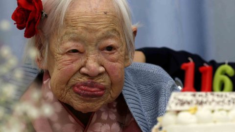 Misao Okawa, the world's oldest Japanese woman looks on her 116th birthday celebration on March 5, 2014 in Osaka, Japan. (Photo by Buddhika Weerasinghe/Getty Images)