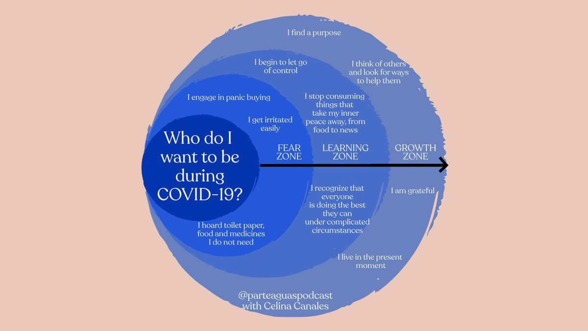Canales began putting together a graphic on her laptop. It started, she says, as a pep talk to herself, and grew into a roadmap of concentric circles leading outward and away from an important question: Who do I want to be during the pandemic? By the time she’d built out her design, the circles had expanded from fear to learning to growth. It was 5 a.m., and as the sun rose, Canales found herself energized and in possession of a new sense of agency.