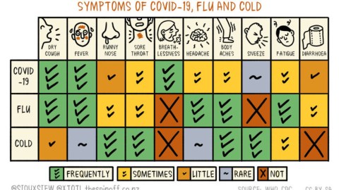 In particular, all three share dry coughing, a runny nose, a sore throat, body aches, and fatigue. But a fever is not a frequent symptom of colds, while it’s a feature of the flu and coronavirus infections, as are diarrhea and headaches.