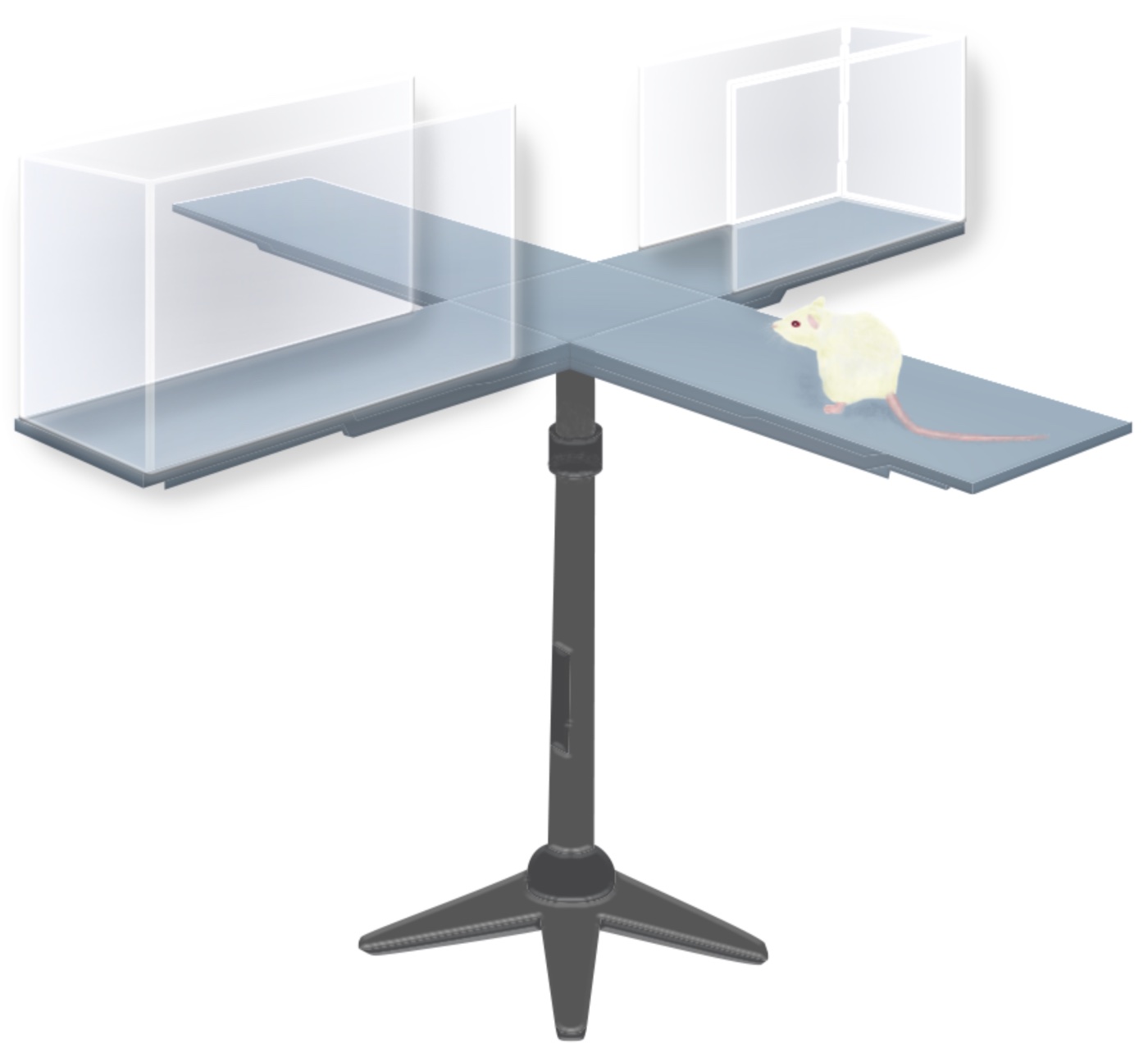 After giving some mice DSF, others the common benzodiazepine diazepam, and others no meds, the researchers studied their behavior on an elevated plus maze, which consists of a plus-shaped platform in which two of the four arms have walls and two don’t.