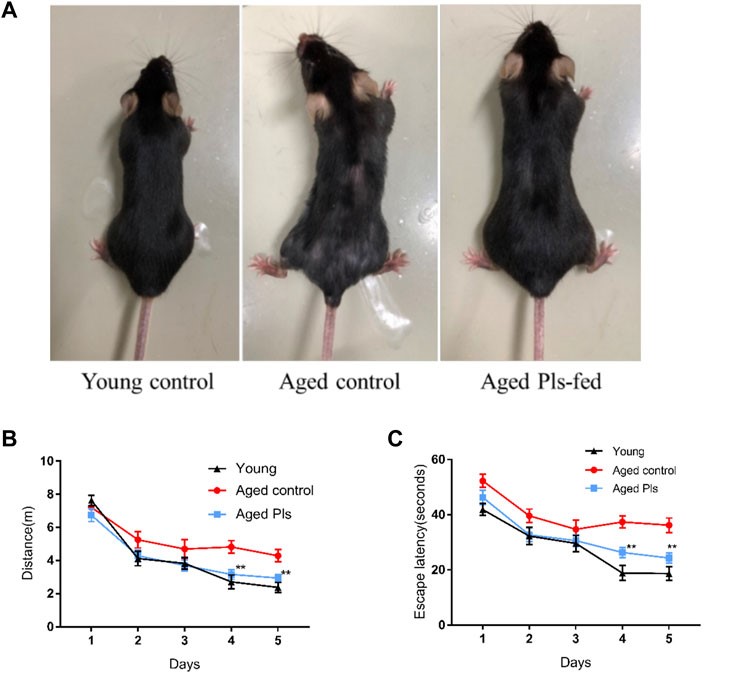 Compared to aged controls, the Pl-fed mice found the platform significantly quicker, and they looked good doing it: The Pls-fed mice’s hair had become thick and glossy, whereas the age control mice’s hair was gray and thinning. This suggests that eating a plasmalogen-rich diet improved age-associated memory decline and hair health in mice.