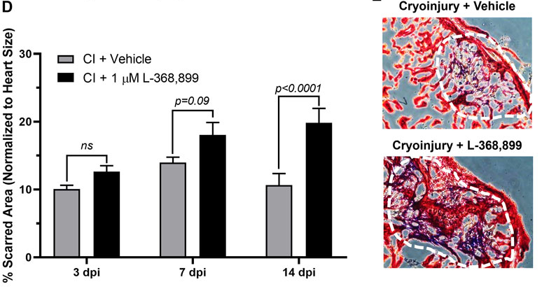 To determine if that burst of love hormone is necessary for regenerating heart tissue, the researchers injected some of the cyro-injured zebrafish with an oxytocin inhibitor. They found that these zebrafish healed over time; however, their hearts contained much more scar tissue than uninhibited fish.