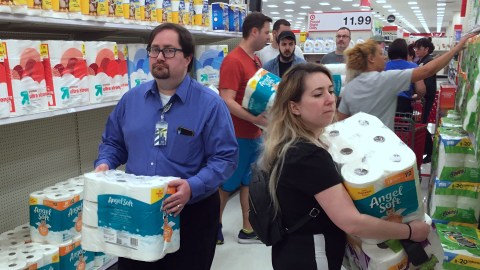 Customers purchase toilet paper at a Target store in Orlando, FL during the panic shopping. March, 2020.Credit: Paul Hennessy / Echoes Wire/Barcroft Media via Getty Images