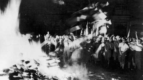 Nazis burn books on a huge bonfire of 'anti-German' literature in the Opernplatz, Berlin. (Photo by Keystone/Getty Images)