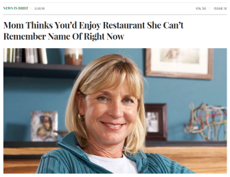 Mom Thinks You’d Enjoy Restaurant She Can’t Remember Name Of Right Now