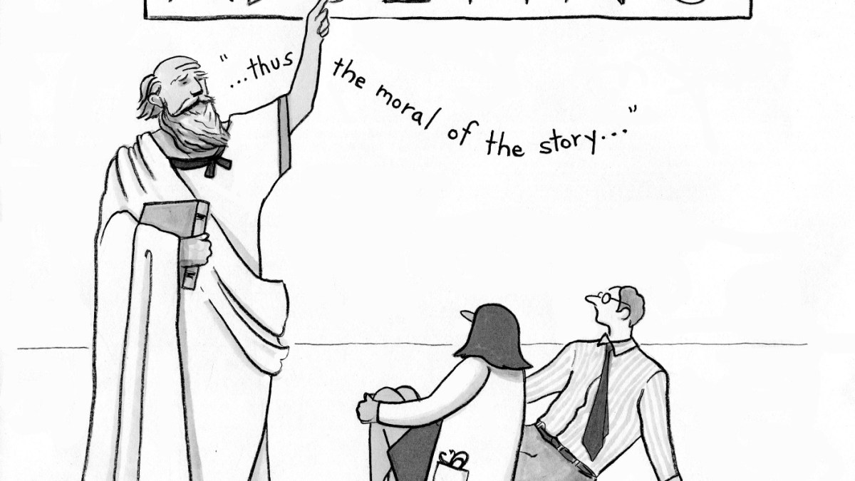 3. The “moral of” a story retains an older sense of “practical lesson” taught, from Latin moralis, translating Greek ethikos, “pertaining to character” (neither language had “a word correctly translated by our word moral”).