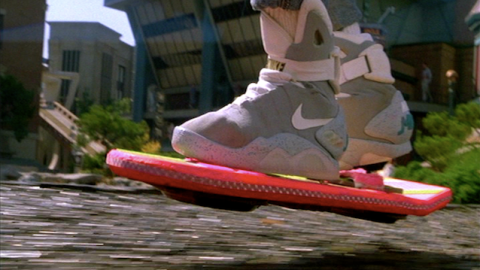 Of course, riding a hoverboard would be pointless without a sweet pair of Nike self-lacing shoes.
