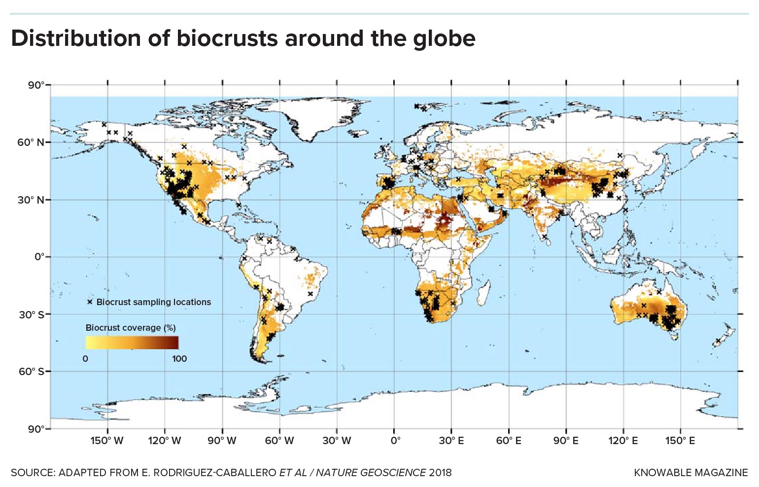 And these days, in addition to getting crushed by boots, biocrusts are threatened by another kind of human footprint: climate change. So researchers are diligently working to learn more about the crusts and how to restore them.