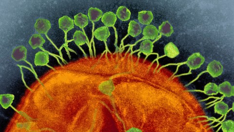 Bacteriophages, known simply as “phages” for short, are viruses that infect and kill bacteria. Essentially harmless to humans, they exist solely to inject their genes into bacterial cells, where they can either lurk indefinitely or replicate madly. In the latter case, they cause their unfortunate host’s metabolism to go haywire, churning out copies of the virus instead of the materials it needs to sustain itself. When the time is right, the new viruses burst the bacteria open like a popped water bomb and spill out to find new hosts in which to repeat the process.