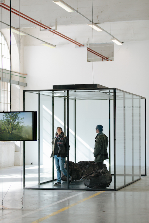 Inside each, Tolaas breaks down a lost flower’s reconstructed smell into four parts, which are individually diffused from the ceiling. The fragments mix around the visitor, replicating the contingency of biology: there is no one exact smell, since every inhalation is subtly different. A landscape of boulders matched to the geology of the flower’s lost habitat completes the diorama of a minimal nature. An ambient soundtrack evokes the lost landscape filled again with buzzing insects and plants in the wind, underpinned by a low frequency rumble that resonates in the gut. As they stand and smell the lost flower in this abstracted environment, the visitor becomes the subject of the nature display. They are no longer just an observer, but part of an observed nature, watched by others looking in (fig. 14.11). The physical experience induces a connection to otherwise obscure flowers, long ago extinguished in distant places by the actions of earlier colonizers.