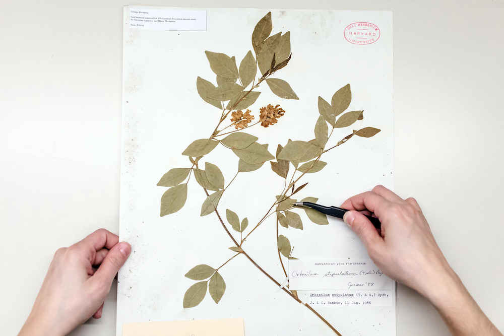 Leafing through folders of pressed plant specimens at Harvard University’s herbaria, synthetic biologists Christina Agapakis and Dawn Thompson were hunting flowers that no longer exist. As they cross-referenced a print-out of The IUCN Red List of modern plant extinctions against cursive names inked on yellowing labels, they found twenty species from which they cut tiny tissue samples (fig. 14.1).