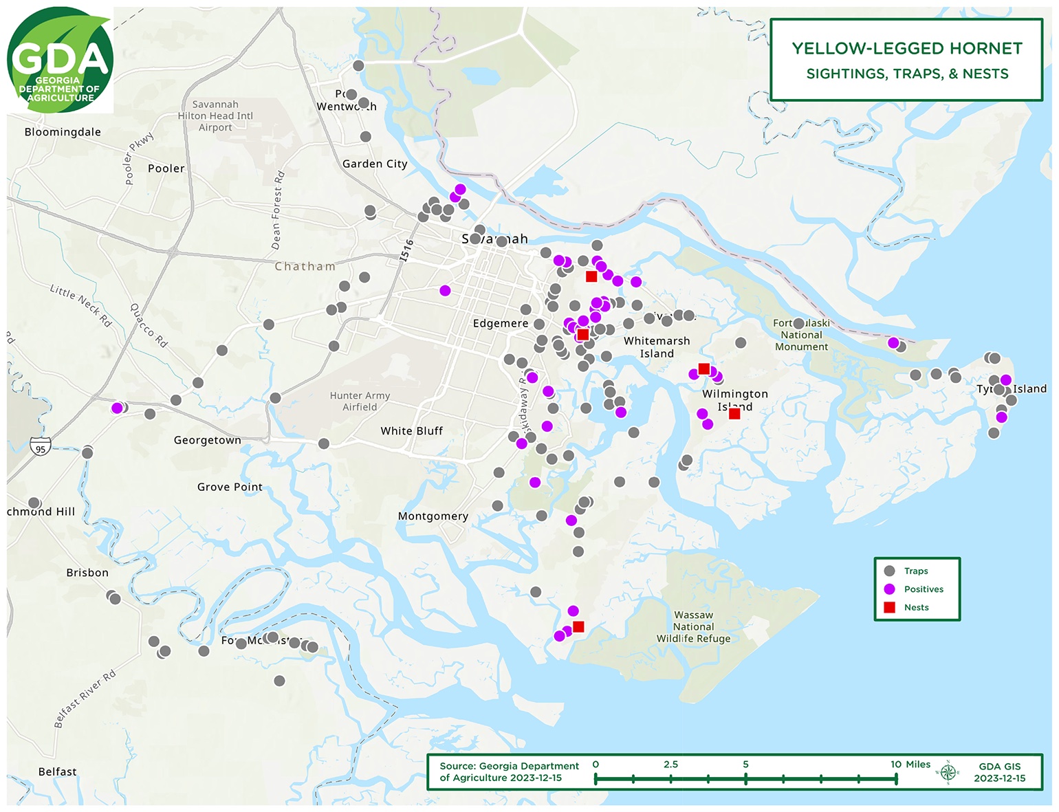 Back in Georgia, Bartlett has tracked down the source of the captured yellow-legged hornets. His genetic analysis shows that a single queen arrived from southern China, the Korean peninsula or Japan in late 2022. He believes the hornets captured last year were the first American-born generation founded by the stowaway queen. Now, the second-generation has emerged. “We have been finding queens a little further out than we had hoped. But nothing near the distances they see in Europe,” says Bartlett. As of the end of April, the state had trapped and destroyed 21 queens.