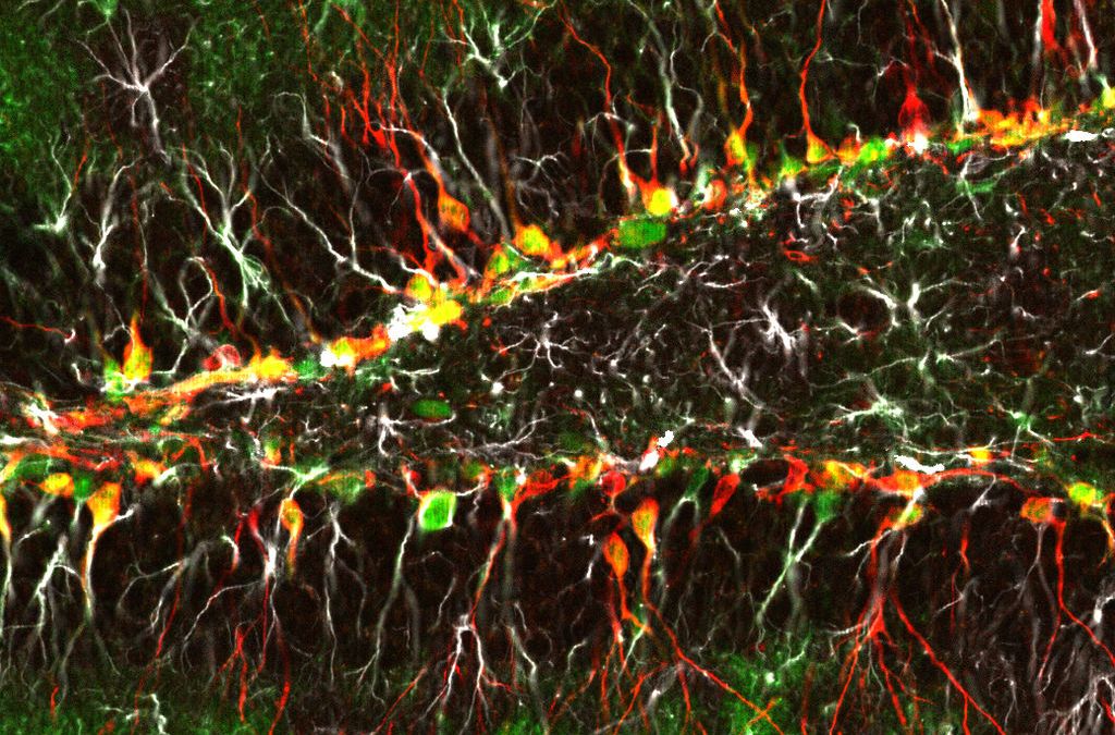 Neurons in an adult mouse’s hippocampus. Credit: Wikipedia.