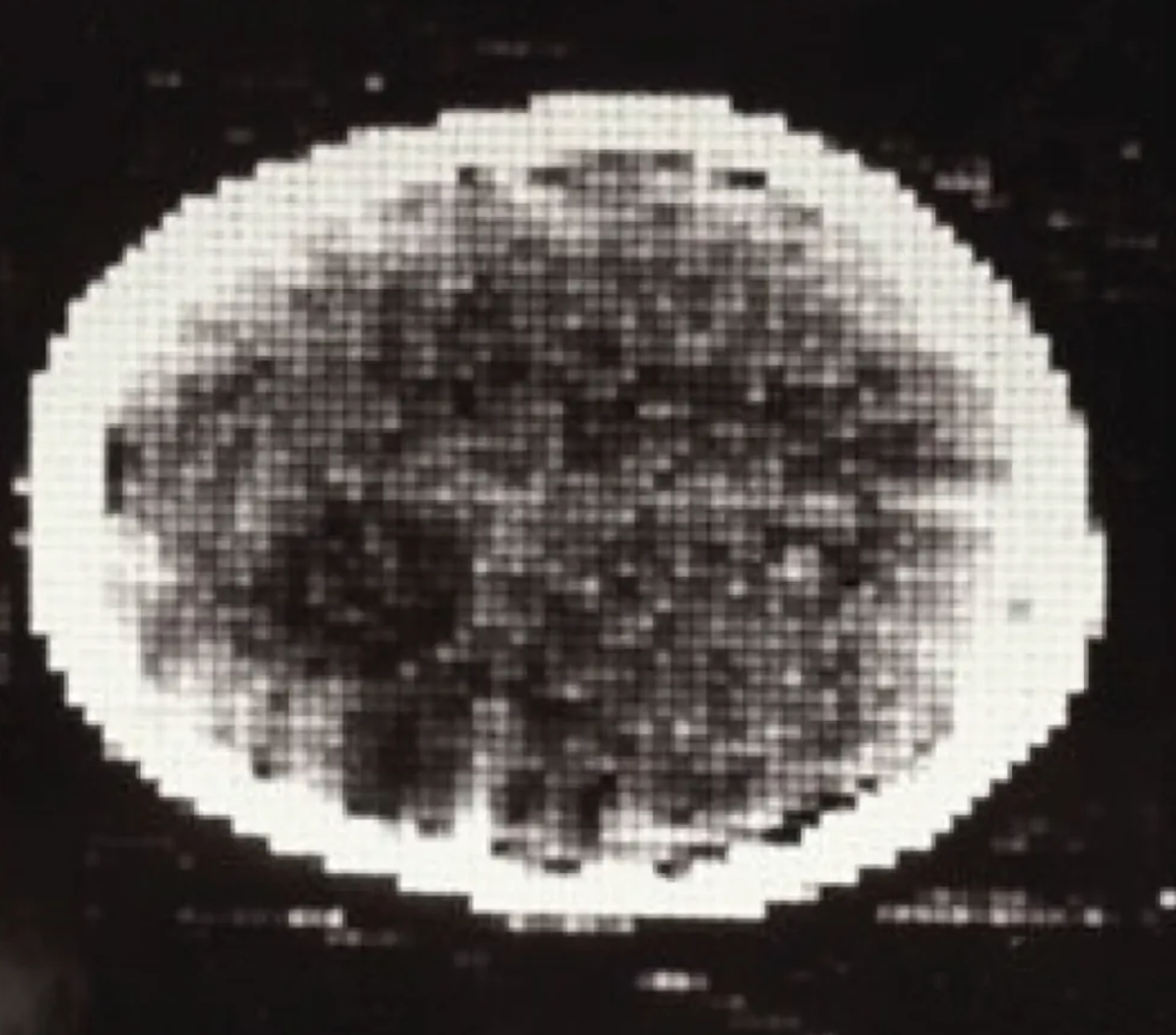 It was not a fast process – 30 minutes for the scan, a drive across town with the magnetic tapes, 2.5 hours processing the data on an EMI mainframe computer and capturing the image with a Polaroid camera before racing back to the hospital.