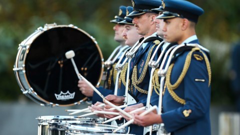 Members of The Alabama Crimson Tide color guard perform before playing against the Florida Atlantic Owls on September 22, 2012. Photo by Michael Chang/Getty Images