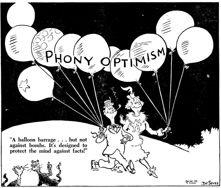 The emergence of fake news is also not new. Misinformation, as expressed in the lead photo above, has long been rampant. Geisel felt that America was not doing enough to combat Hitler’s forces, a favorite subject of his pen.