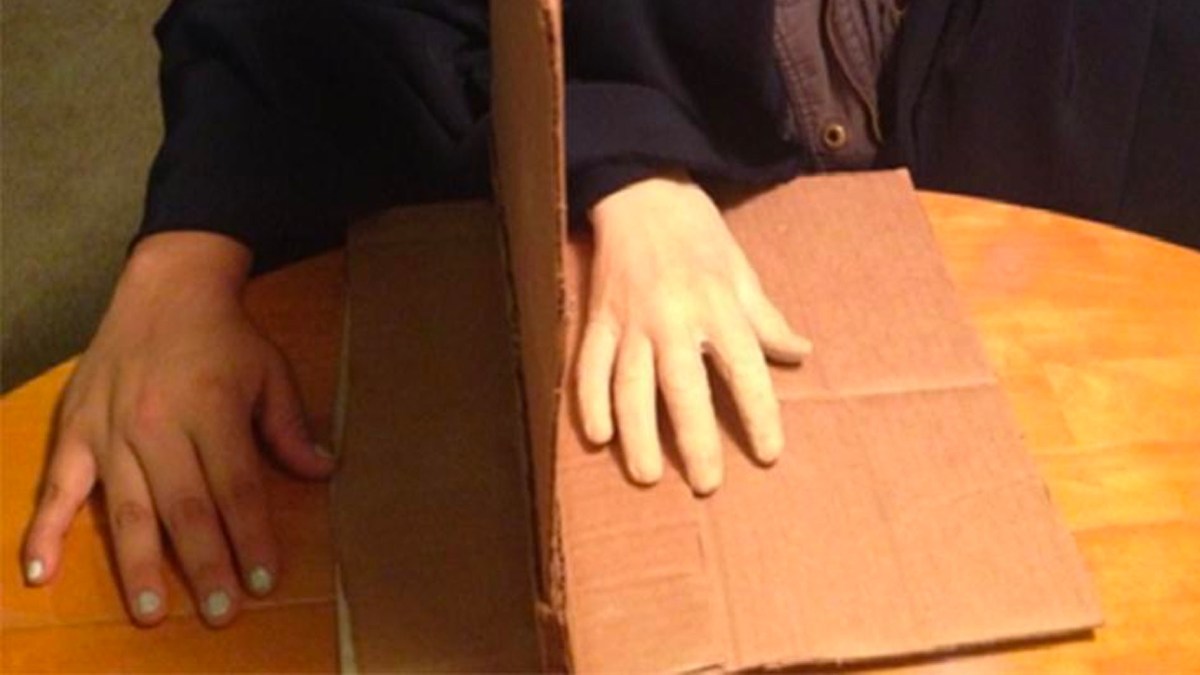 I simply ask you to place both your hands flat on a table in between a piece of cardboard serving as a “little wall.” You can’t see your real right hand. And left to the “cardboard screen” you see a rubber hand, which looks like your own. Now, when you look down on the table you see two hands in front of you. But only one is yours — that is, the left one. Sitting across from you, I stroke the fake hand and the hidden right hand in perfect synchrony with a paintbrush. Astonishingly, after just a few minutes you’ll most likely feel touch sensations arising from the rubber hand as if it were yours!