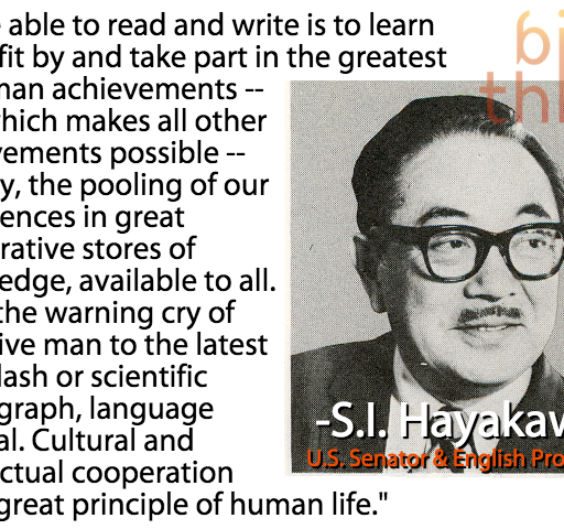 "To be able to read and write is to learn to profit by and take part in the greatest of human achievements -- that which makes all other achievements possible -- namely, the pooling of our experiences in great cooperative stores of knowledge, available to all. From the warning cry of primitive man to the latest newsflash or scientific monograph, language is social. Cultural and intellectual cooperation is the great principle of human life."