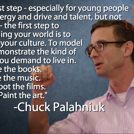 "The first step — especially for young people with energy and drive and talent, but not money — the first step to controlling your world is to control your culture. To model and demonstrate the kind of world you demand to live in. To write the books. Make the music. Shoot the films. Paint the art."