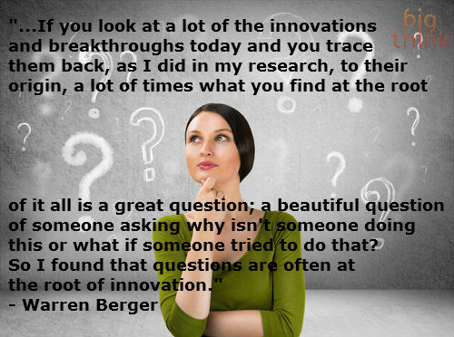 "...If you look at a lot of the innovations and breakthroughs today and you trace them back, as I did in my research, to their origin, a lot of times what you find at the root of it all is a great question; a beautiful question of someone asking why isn't someone doing this or what if someone tried to do that? So I found that questions are often at the root of innovation."