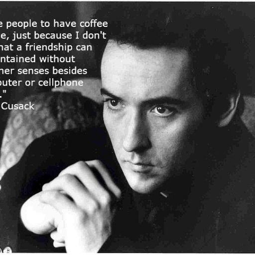 "I force people to have coffee with me, just because I don't trust that a friendship can be maintained without any other senses besides a computer or cellphone screen." - John Cusack