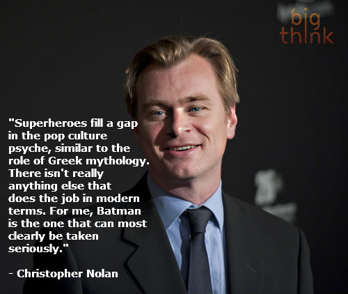 "Superheroes fill a gap in the pop culture psyche, similar to the role of Greek mythology. There isn't really anything else that does the job in modern terms. For me, Batman is the one that can most clearly be taken seriously." - Christopher Nolan