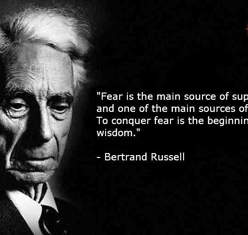 "Fear is the main source of superstition, and one of the main sources of cruelty. To conquer fear is the beginning of wisdom." - Bertrand Russell