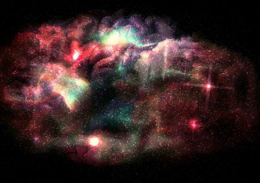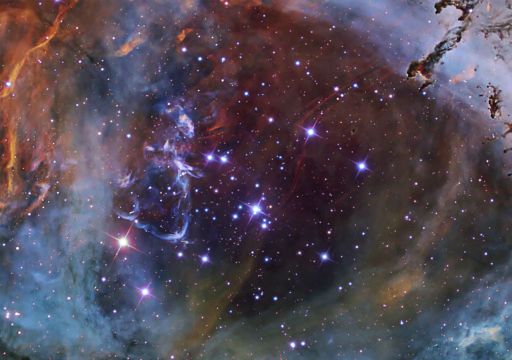 This photograph of the dazzling heart of the Rosette Nebula resembles “the heavens” in a painting from the age of romanticism. The bright cluster of stars–the NGC 2244–formed a few […]