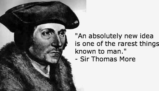 "An absolutely new idea is one of the rarest things known to man."- Sir Thomas More (born on this date in 1478)