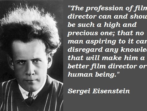 "The profession of film director can and should be such a high and precious one; that no man aspiring to it can disregard any knowledge that will make him a better film director or human being." - Sergei Eisenstein (born on this date in 1898)