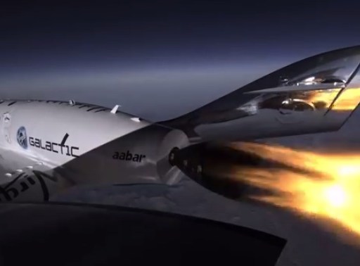 In the video below, watch as SpaceShipTwo's hybrid rocket motor powers the spacecraft to a top speed of Mach 1.4, or 1.4 times the speed of sound.