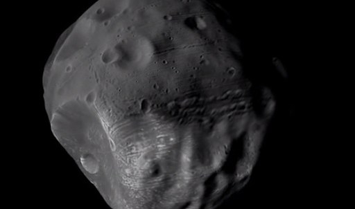 In order to better visualize the Martian moon Phobos, images from the European Space Agency's Mars Express orbiter have been combined to create a virtual rotation movie.