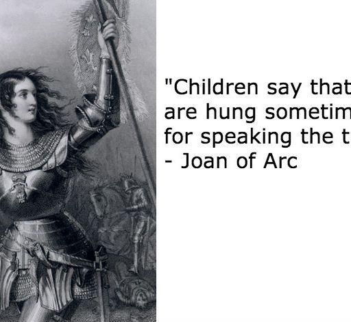 "Children say that people are hung sometimes for speaking the truth." - Joan of Arc (born on this date in 1412)