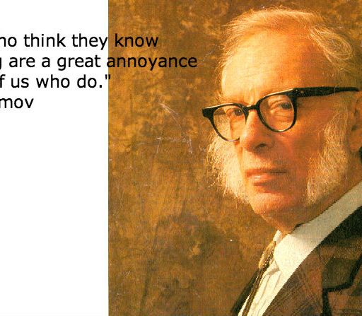 "People who think they know everything are a great annoyance to those of us who do."-Isaac Asimov (born on this date in 1920)