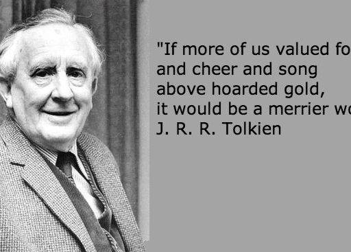 "If more of us valued food and cheer and song above hoarded gold, it would be a merrier world."-J. R. R. Tolkien (born on this date in 1892)