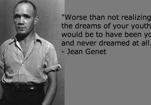 "Worse than not realizing the dreams of your youth, would be to have been young and never dreamed at all." - Jean Genet