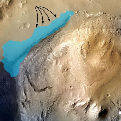 This illustration represents the possible extent of an ancient lake inside Gale Crater on Mars. Examination of mudstone confirmed the exist of the lake which formed billions of years ago.