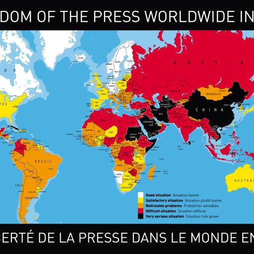 This image, courtesy of Reporters Without Borders, rates countries based on the state of freedom of the press.