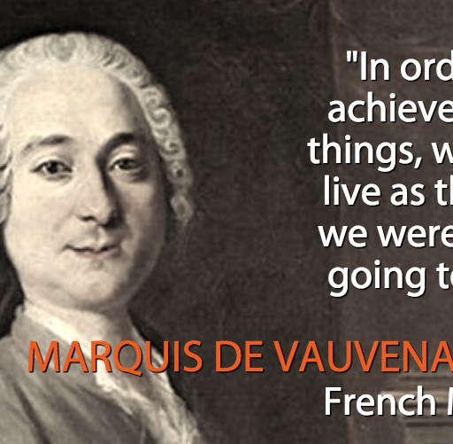 Words of wisdom from Luc de Clapiers, marquis de Vauvenargues: "In order to achieve great things, we must live as though we were never going to die."
