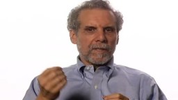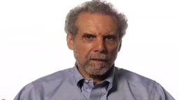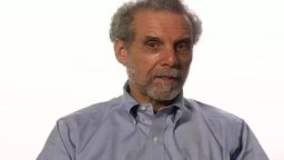 An older man with gray hair and beard wearing a dark jacket over a red shirt, looking straight at the camera against a plain light background.