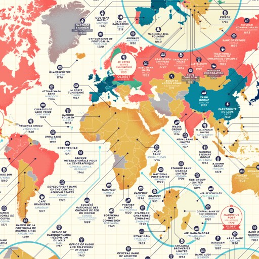 Maps show the oldest company in (nearly) every country – and a few interesting corporate trends.