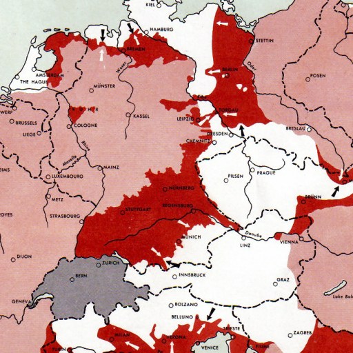 U.S. Army maps show how Western and Eastern Fronts met by May 1, 1945.