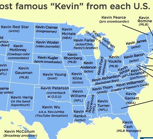 A map of each state's most famous Kevin