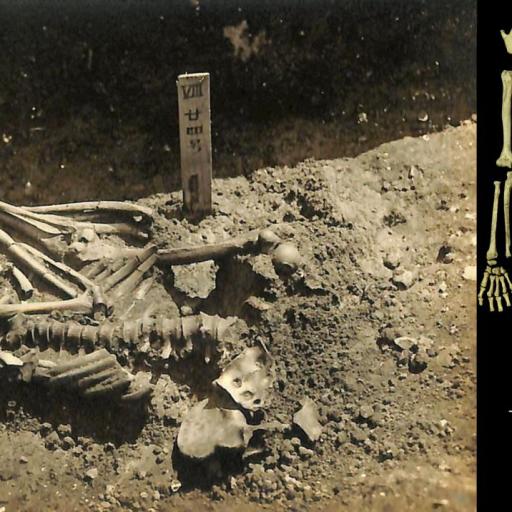 The skeleton of the world's oldest known shark attack victim exhibits telltale wounds.