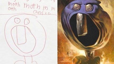 The Monster Engine is one of the best ideas I’ve come across. It’s a book, demonstration, lecture and gallery exhibition created by Dave Devries. The premise is simple: children draw pictures of monsters and Devries paints them realistically. According to the website, the idea was born in 1998 when Devries took an interest in his niece’s doodles. As a comic addict, Devires wondered if he could use color, texture and shading to bring his niece’s drawings to life.