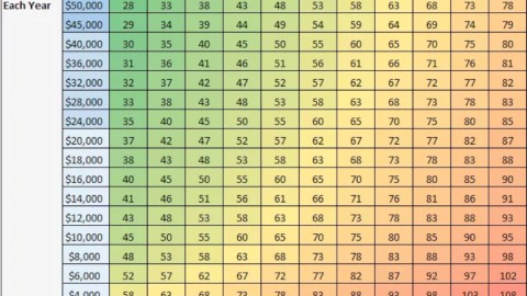 The grid, created by personal finance blogger Zach at Four Pillar Freedom, shows when you can become a millionaire based on annual savings and the age you start to save. It also assumes that you’re starting out with $0 saved and all savings are invested at a 7% annual interest rate.