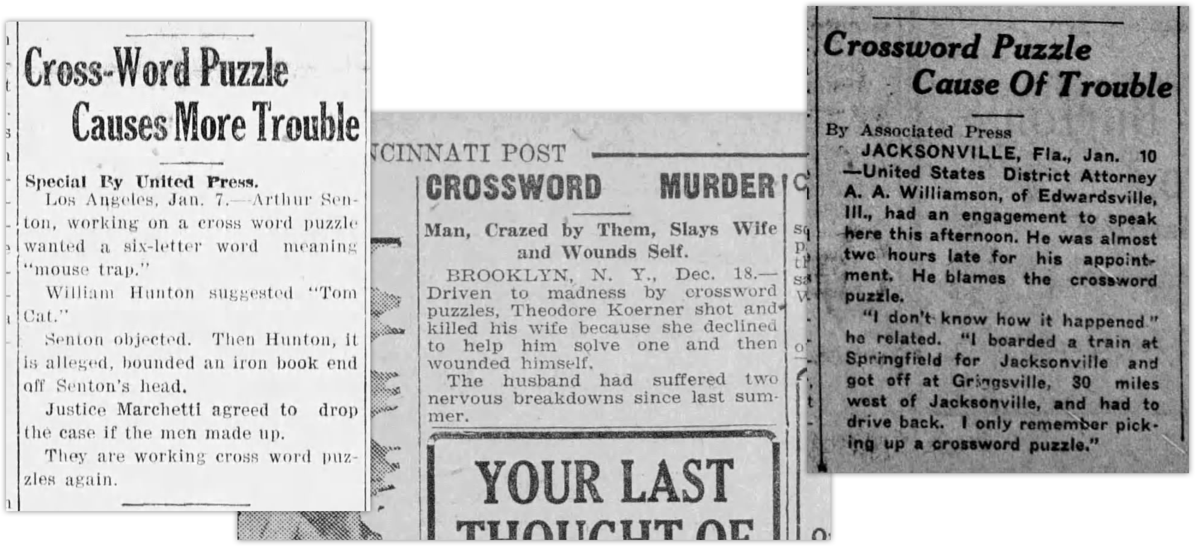 Ironically, many of these sensationalist reports appeared in the very papers printing them, sometimes right next to the crosswords themselves.