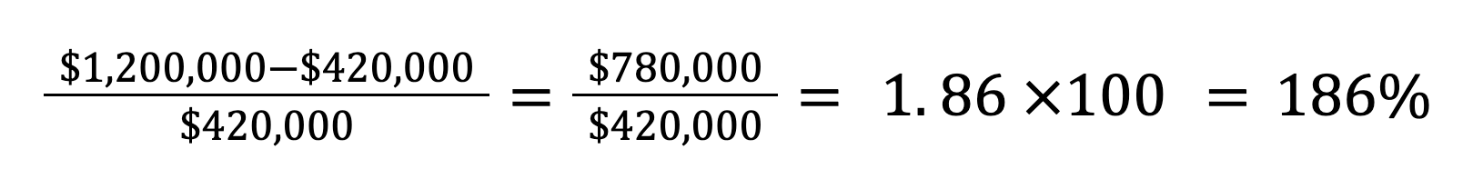 With an ROI of 186%, the net gain was $780,000 out of the total return of $1.2 million. The return on each dollar spent was 186%.
