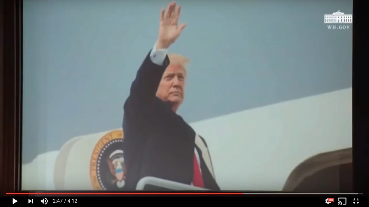 Haven’t seen this before: Before POTUS comes out for press conference, WH shows a Michael Bay-esque video showing Trump and Kim, military weapons, bombs